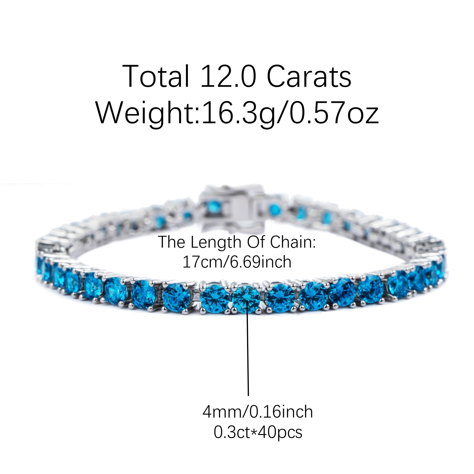 12.0 Carats Blue Moissanite Tennis Bracelet For Women Men, D Color VVS1 Round Cut, 925 Sterling Silver Hip-hop Bracelet, High Quality Jewelry For Daily Wear, Fine Fashionable Essential Items, Perfect Christmas Halloween Gifts For Women Men Wife Mom