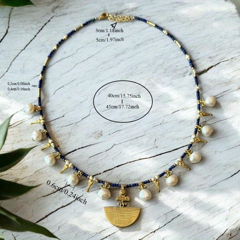 Blue Handmade Natural Lapis Lazuli & Freshwater Freshwater Pearls Necklace for Women - Elegant Golden-Tone Pendant with Blue Gemstones, Everyday & Party Jewelry Gift for Mom, Freshwater Pearls And Chain Necklace, Classic Design, Goldtoned Alloy