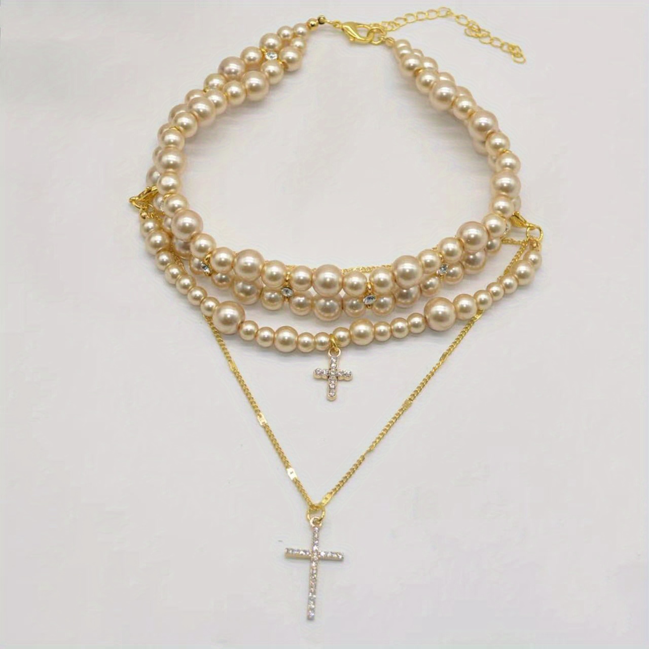 Multi-layered Pearl Cross Pendant Light Luxury Sweater Chain Personalized Fashion Necklace