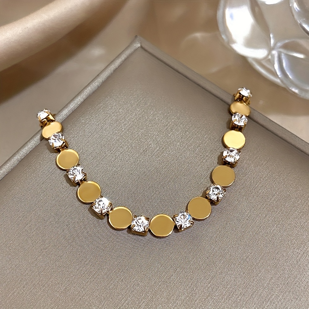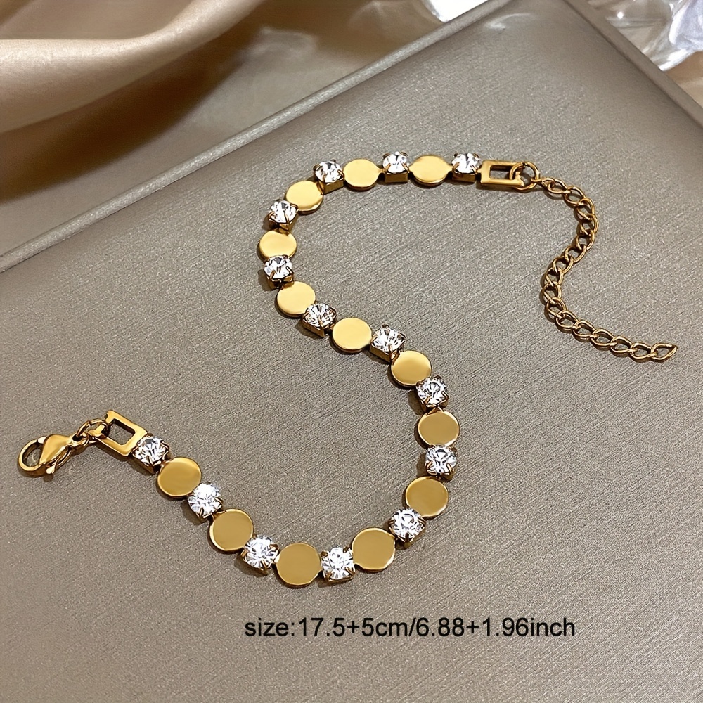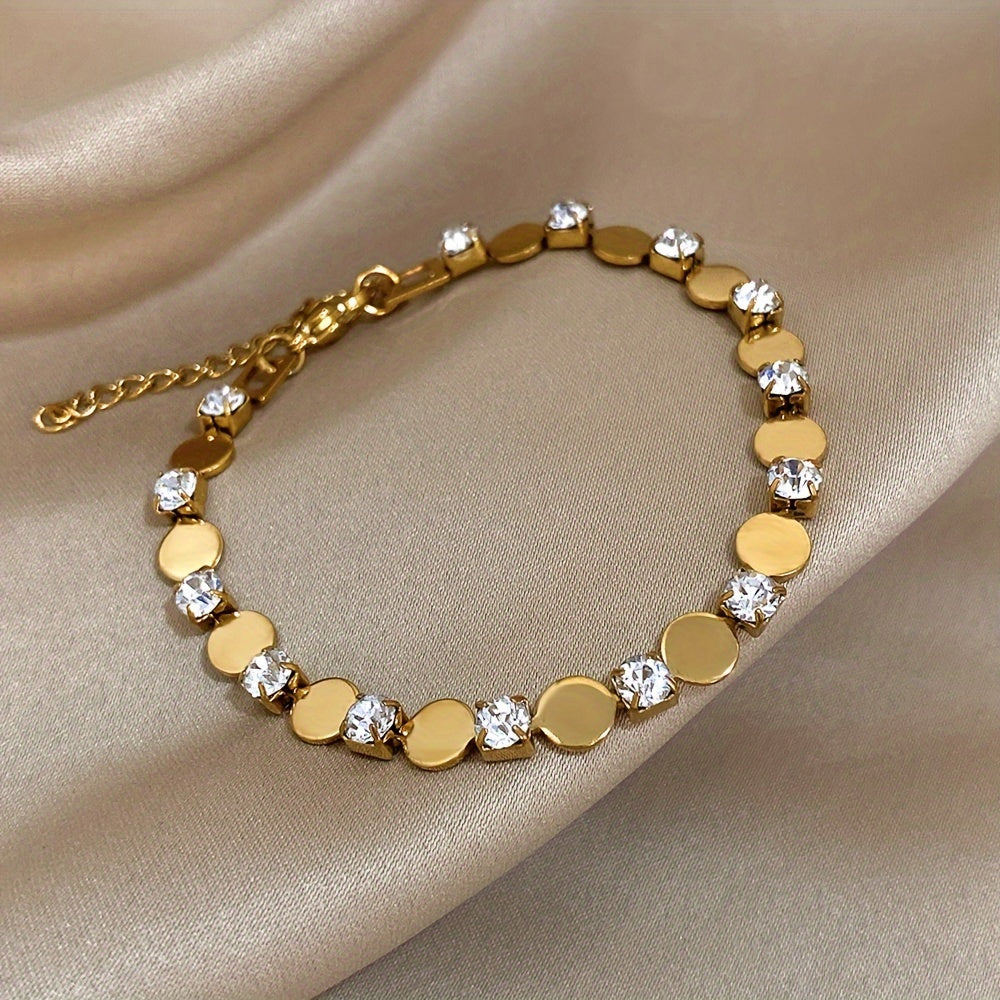 Stainless Steel Cubic Bracelet - Minimalist Chain Link Jewelry with Round Inlay, Durable Base Metal Wristwatch for Daily Wear & Parties, Elegant Christmas Gift & Year-Round Accessory
